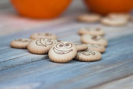 Cool cookies with smiles and tea. a little blur