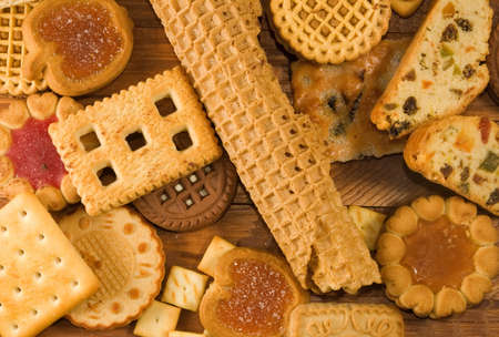 Dessert, cookies of wound types and tastes, with different fillings from confiture and jam. The taste of chocolate and raspberries and strawberries.