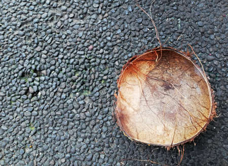 Coconut shell placed on dark stone floor
