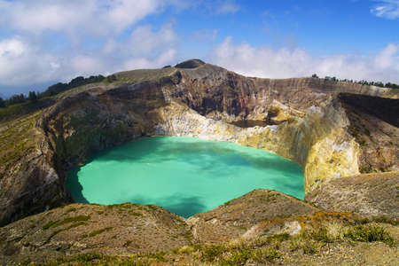 Colourful Sulphureous Crater lakes Wawo muda volcano in Flores in Indonesia