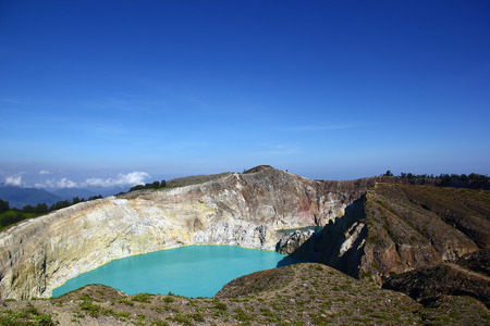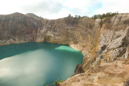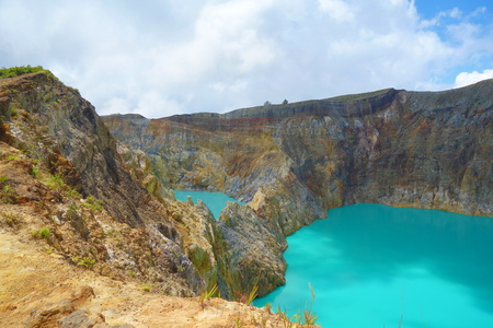 View of the crater wall above the turquoise lake Kootainuamuri. Kelimutu - Turquoise colored volcanic lake