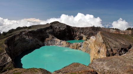 Two different coloured crater lakes at Kelimutu, Flores, Indonesia