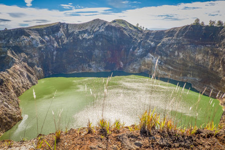 Crater lakes of stunning Wawo muda volcano in Flores in Indonesia