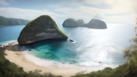 Generative AI : Aerial view of Diamond Beach Nusa Penida Bali Indonesia