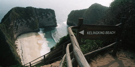 Explore the breathtaking Kelingking Beach in Nusa Penida, Bali. Marvel at its dramatic cliffs, turquoise waters, and unique T Rex shaped coastal formation.