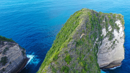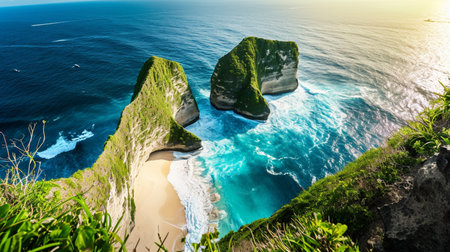 Generative AI : Aerial view of high cliffs along the coastline at Nusa Penida Bali Indonesia