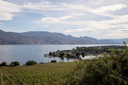 Vineyards on the shores of Okanagan Lake. Kelowna, British Columbia, Canada.