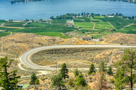 C-shape road in Okanagan valley on summer day