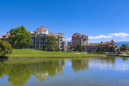 Kelowna Downtown Waterfront on Okanagan Lake Kelowna British Columbia Canada on a summer day