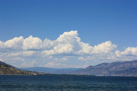 Okanagan lake at summer day with clouds on the sky