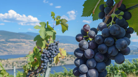 Ripe Grapes on the Vine with Scenic Landscape
