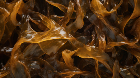 Close-up of vibrant yellow edible seaweed glistening in the sunlight