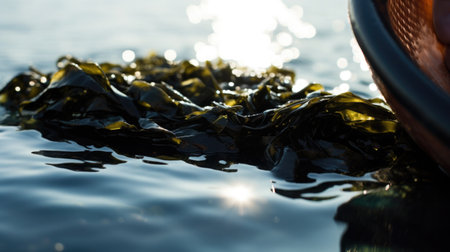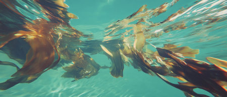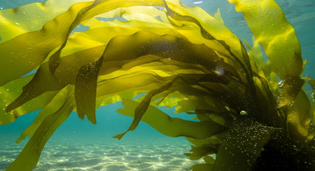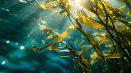 Exploring the intricate textures of kelp seaweed in a sunlit underwater environment