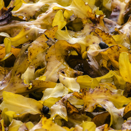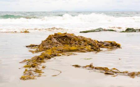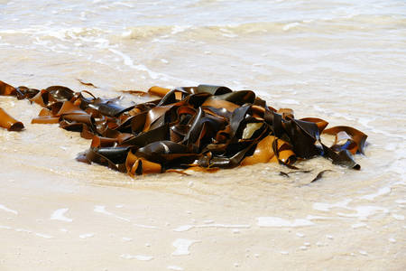 brown kelp seaweed on the sea beach