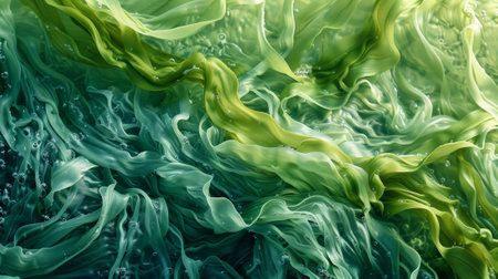 The contrast of deep green and lighter shades in the wavy seaweed creating a sense of depth and movement