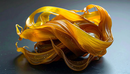 close up of a pile of yellow and orange ribbons on a black background