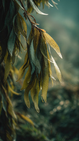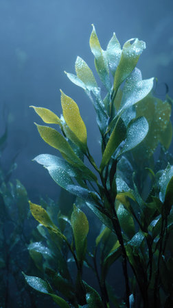 macro of kelp forest, with delicate fronds swaying in the current, created with generative ai