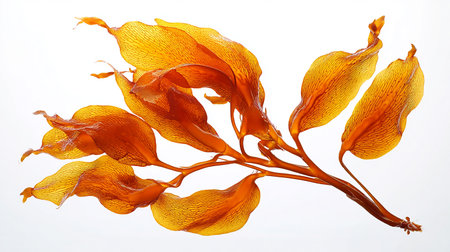 A close up shot of a red kelp leaf isolated on a white background