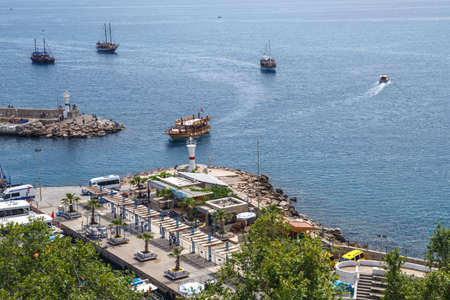 ANTALYA, TURKEY: The old harbor in Antalya and the port with ships and boats on a sunny summer day, Turkey.