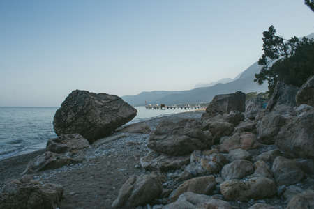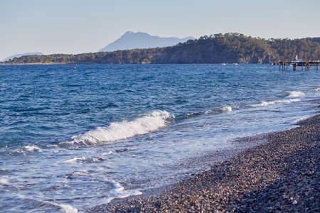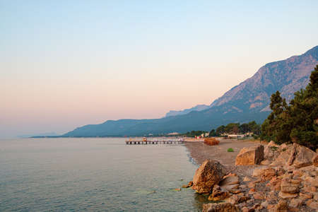 dawn on the sea coast in Turkey Mediterranean sea view from the wild beach on Beldibi
