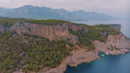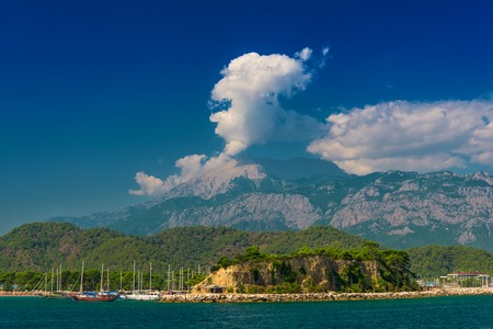 View of the Mediterranean sea and the mountain coast, Kemer, Turkey.