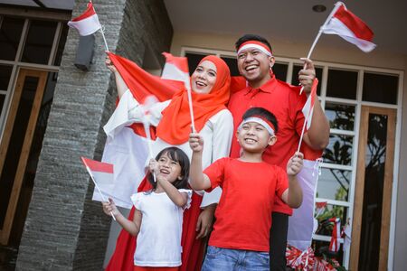 asian family celebrating indonesian independence day at home