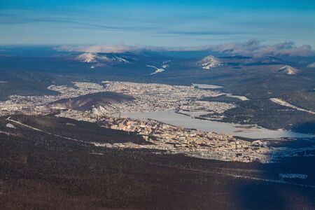 Zlatoust town in winter, aerial view
