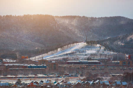 the observation deck on Nikolaevskaya Sopka in winter, Krasnoyarsk. High quality photo