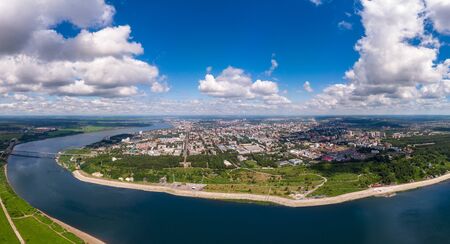 Panorama of city and Tom River. Aerial top view