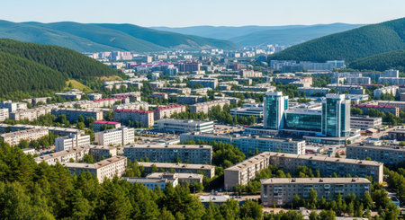 Panoramic view of the urban-type settlement of Yashkino, Kemerovo region-Kuzbass