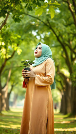 an Asian woman traveler in keraton solo wearing jilbab and analog camera