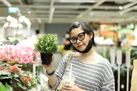 An Asian female model exudes confidence as she stands on a tennis court, dressed in jeans and a black shirt. She complements her look with a bandana and glasses, creating a stylish and assertive presence against the backdrop of the tennis court setting.
