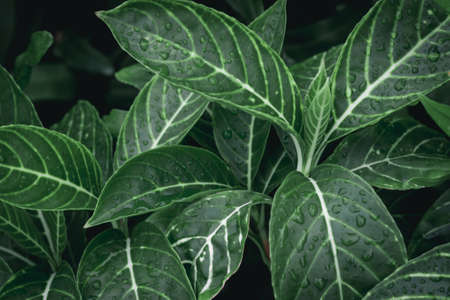 green leaves with water drop for natural background.texture background of ivy leave green spring wall Green leaves background. Green leaves color tone dark in the morning.Tropical Plant,environment,