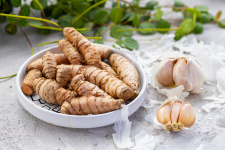 An AI generated illustration of Galangal root, a fragrant spice with a unique flavor, extensively used in Southeast Asian dishes.