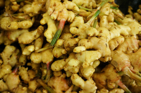 image of fresh ginger root in street market