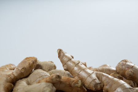 Close up of gingers pile against white background