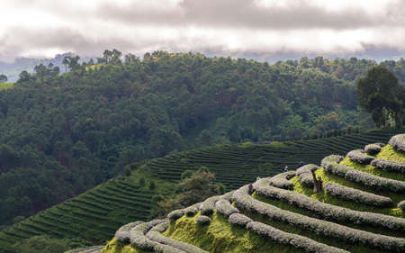 Background natural landscape view on the mountains. tea plantation on the mountain. Thailand doi-angkhang