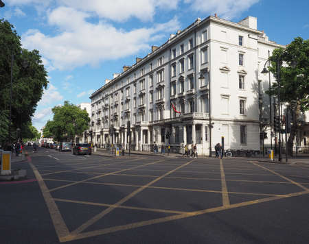 UK, United Kingdom, London- 03 October 2015: Residential area at Slaone Street. Cadogan gate with row of periodic buildings. Luxury property in the center of London.