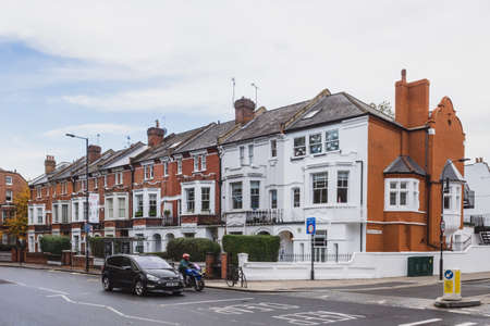 London/UK-30/7/18: British terrace houses on Loudoun Road in St John's Wood. Terrace house is a form of housing that originated in Europe, whereby a row of attached dwellings share side walls