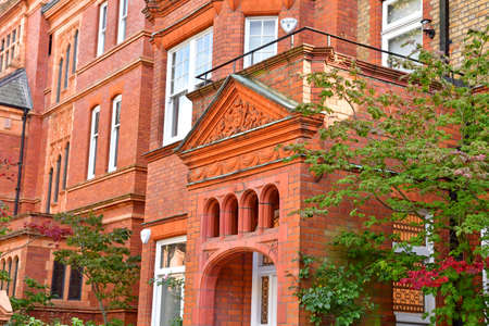 LONDON, UK - NOVEMBER 28, 2016: Red brick Victorian houses facades in the borough of Kensington and Chelsea