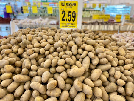 KUALA LUMPUR, MALAYSIA - APRIL 15, 2020 : Fresh potato display on the shelf at supermarket.