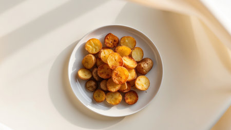 AI Generated. Homemade Fresh And Fried Potatoes On Plate Golden Color