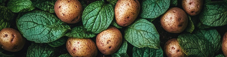 Freshly Dug Potatoes Nestled in Green Leaves, Celebrating a Bountiful Organic Garden Harvest