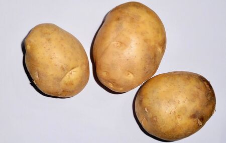 Washed organic potatoes grouped together naturally, highlighting their earthy tones on a clean white background