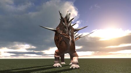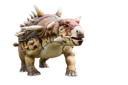 Ankylosaurus is a herbivorous genus of armored dinosaurs, a dinosaur from the very end of the Cretaceous period. Close-up with copy space. High quality photo