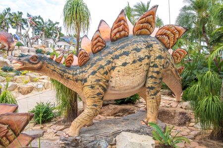 Pattaya,Thailand-September 4,2020:The dinosaurs statue is beautiful in Nong Nooch Tropical Botanical Garden