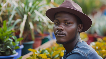 A man showcases his cultural heritage by wearing colorful traditional clothing, coupled with a wide-brimmed hat and stylish sunglasses.
