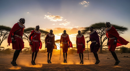 Massai tribe performing a traditional dance in the middle of African savanna AI generated