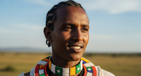 Maasai woman and traditional beaded adornments reflecting her identity.