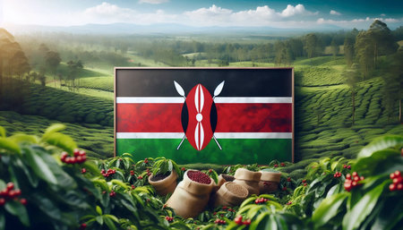 A Kenyan flag in coffee and tea plantation agriculture, Ai generated image